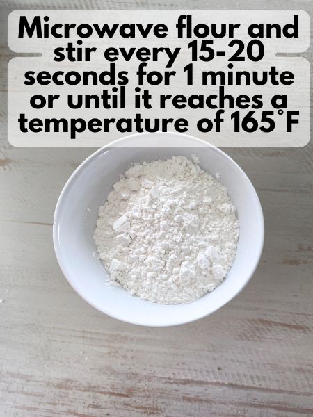 1. Heat-treat the flour: Microwave the flour in a bowl for about 1 minute, stirring every 15 seconds to ensure it reaches 165°F throughout. Let it cool before using.