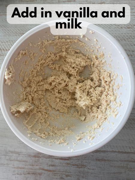 4. Add the wet ingredients: Mix in the vanilla and a bit of milk until smooth.