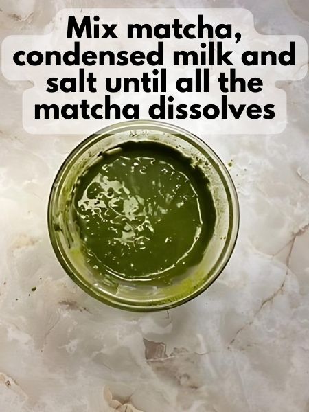 - Mix together the condensed milk, matcha and a pinch of salt until all the matcha is dissolved completely.