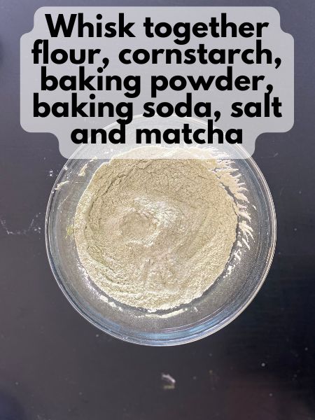 2. Whisk together dry ingredients: In a medium bowl, combine flour, cornstarch, baking powder, baking soda, salt, and matcha. Set aside.