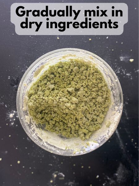 5. Mix dry into wet: Gradually mix in the dry ingredients until a soft, thick dough forms.