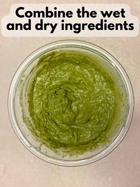 - In a mixing bowl, combine the flour, sugar, and matcha powder.