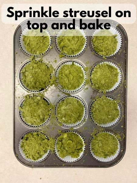 - Spread the streusel mixture evenly over muffin batter