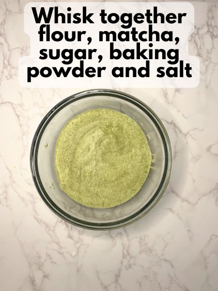 2. In a large bowl, whisk together flour, matcha powder, sugar, baking powder, and salt.
