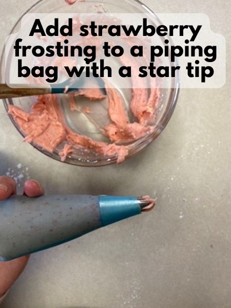 - Chill the Frosting: If your kitchen is warm, chill the frosting for a few minutes before piping to help it hold its shape better. This may not be necessary, depending on your kitchen, your altitude and other varying factors, but it’s worth mentioning if you find you have runny frosting and you just can’t add any more powdered sugar to thicken it up. Also, you can store these cupcakes in the fridge to help keep the strawberry frosting fresh.