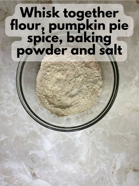 - In a medium-sized bowl, whisk together the flour, pumpkin pie spice, baking powder, and salt.