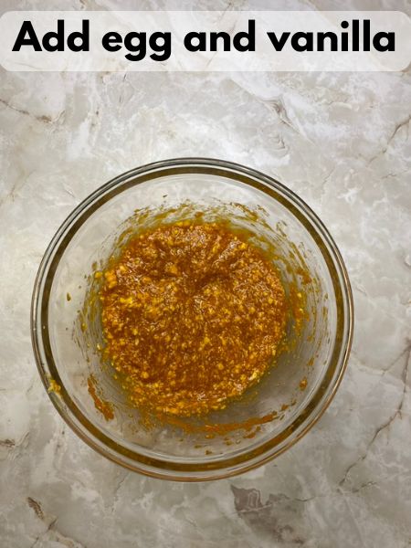 - Then, add in the egg and vanilla, beating again until everything is smooth.