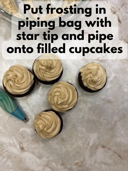 - Pipe or spread the Bailey’s frosting generously over the top of each cupcake.