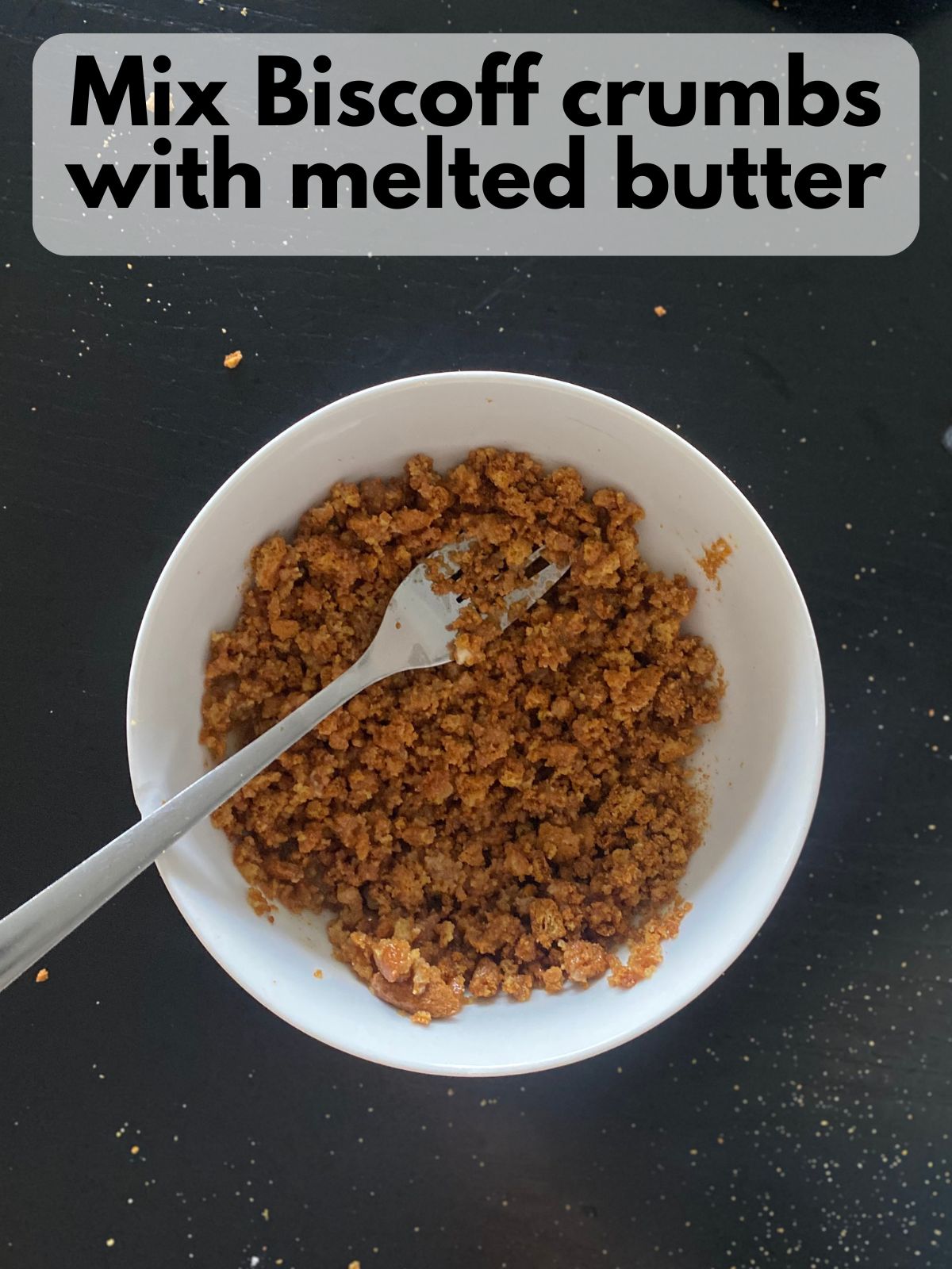 Place the Biscoff cookies in a zip-top bag and crush with a rolling pin, or pulse them in a food processor. Mix with melted butter.