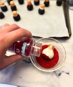 - If you are going to coat your Oreo Ornament balls in sprinkles, do that while the chocolate is still wet.