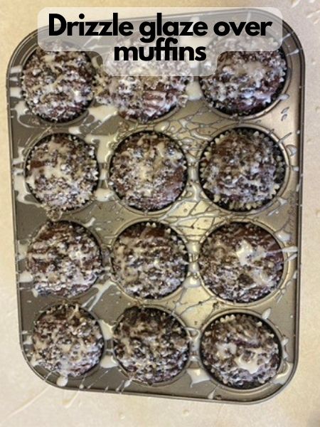 - Once the muffins are completely cooled, drizzle the glaze over the top of each muffin.