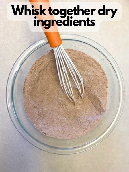 - In a large bowl, whisk together the flour, sugar, cocoa powder, baking powder, and salt.