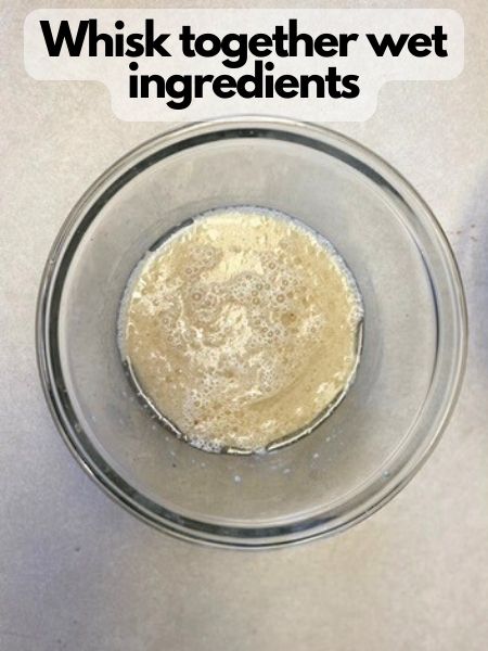 – In a separate bowl, whisk together the non-dairy milk, vegetable oil, and vanilla extract.