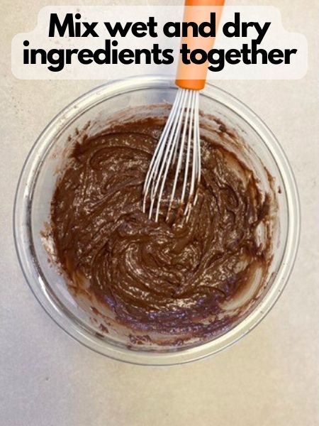 - Pour the wet ingredients into the dry ingredients and stir until just combined.