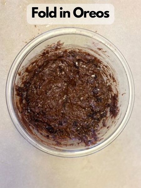 – In a small bowl, combine the crushed Oreos, flour, granulated sugar, and melted vegetable shortening. Mix until crumbly. I like to use my hands to make it easier, but you could also use a large fork or pastry blender.