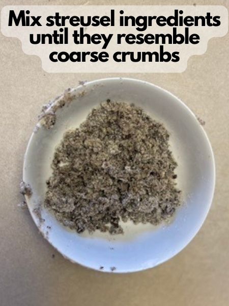 – Sprinkle the streusel mixture over the muffin batter in each cup.