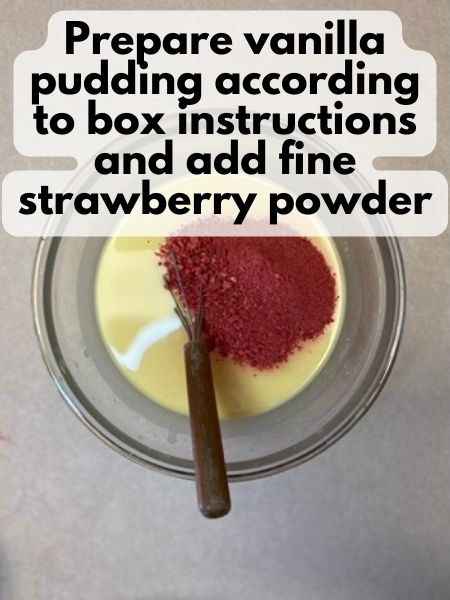 - Mix your strawberry powder into the prepared pudding until it is evenly spread out.