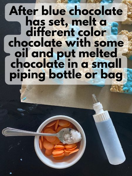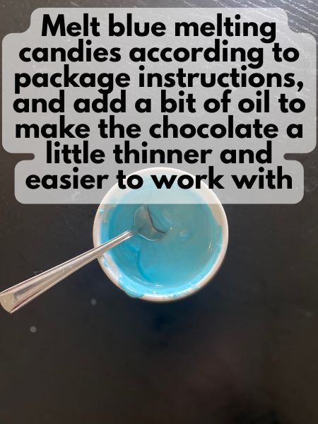 10. Melt the blue candy melts according to the package directions. Or, melt white candy melts and add blue food coloring.