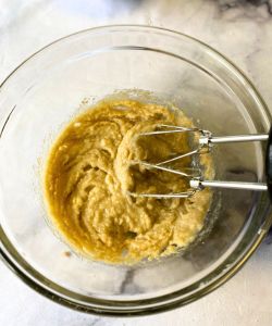 - Add in eggs, vanilla and pumpkin with butter and sugars. Mix until well incorporated.