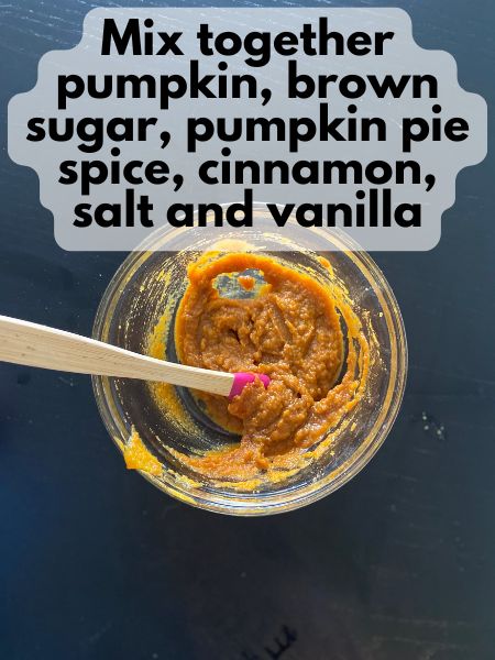 - Make the filling: In a small bowl, stir together the pumpkin puree, brown sugar, cinnamon, pumpkin pie spice, salt, and vanilla until smooth.