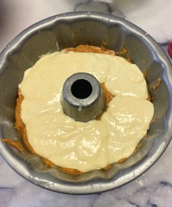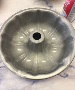 Bake: Place the pan(s) in the preheated oven and bake for about 45-50 minutes. Note: My cake mix said that a bundt cake would take 30 minutes, but it actually took much longer. Watch yours carefully. It’s done when a toothpick inserted into the middle (NOT the edges, because those bake first) comes out clean.