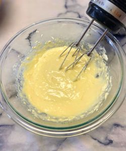 - Beat together cream cheese and powdered sugar until smooth.
