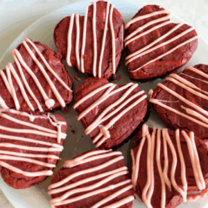 These easy Valentine’s Day red velvet brownies hearts are made with a brownie mix and half a red velvet cake mix or ease and simplicity. Once baked, you can cut them into heart shapes and drizzle them with silky pink candy melts for the cutest Valentine’s desserts. They’re simple, festive, and perfect for gifting, parties, or enjoying at home.