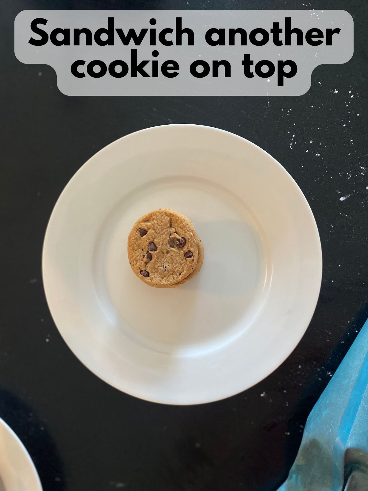 - Gently press a second cookie on top to form a sandwich. Press just until the frosting about reaches the edge of the cookies.