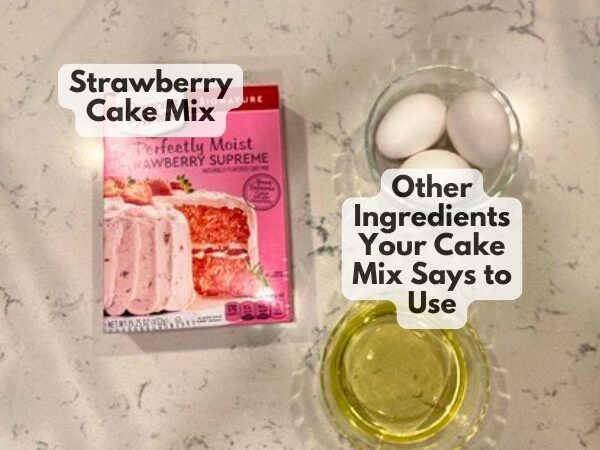 - 1 box of strawberry cake mix (plus the ingredients listed on the box: eggs, oil, and water)