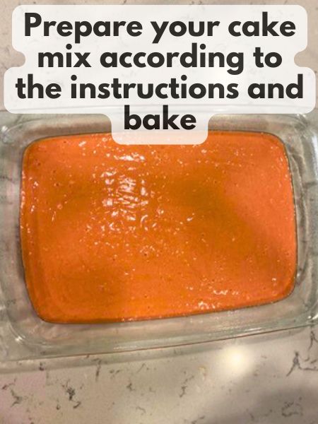 - Prepare your strawberry cake mix according to the package instructions. Bake your cake mix according to the package instructions. You can use any size pan you want. I usually go with a 9x13 pan because it's the fastest.