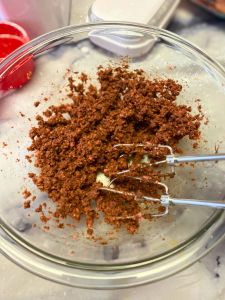 - Place butter, powdered sugar, cocoa and ¼ cup heavy whipping cream (If you use milk instead, start with 2 Tbsp) in a large mixing bowl. Using a stand mixer or a hand electric mixer, beat all of the ingredients until smooth. If the frosting seems too thick, add more whipping cream (or milk).