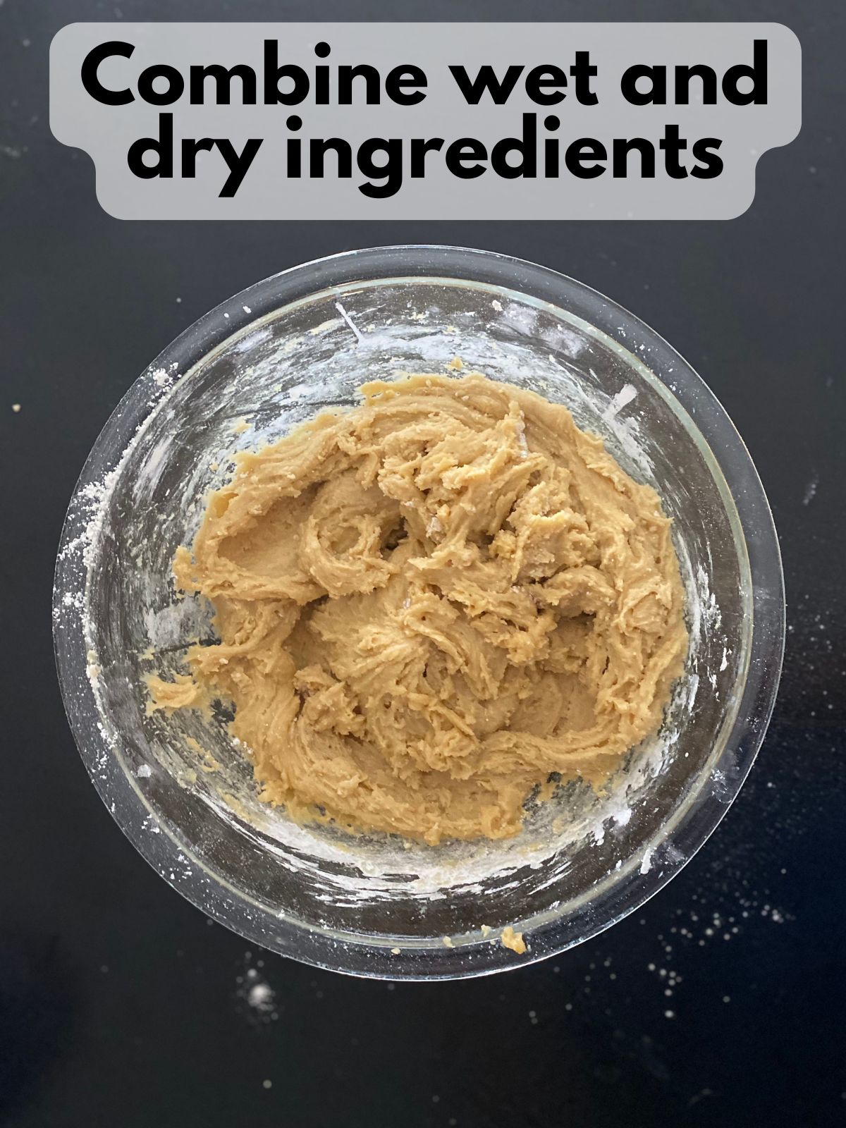 4. Add dry ingredients to the butter mixture and mix until combined.