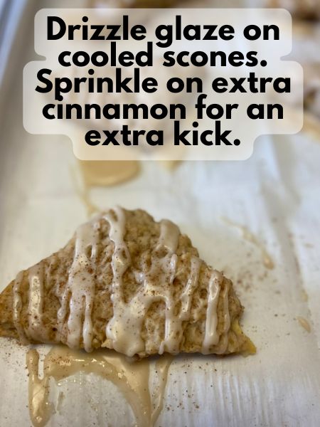 - Whisk together all your glaze ingredients until smooth and drizzle glaze on top of cooled scones.