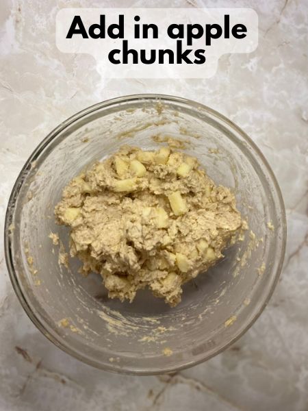 - Fold in the chopped apples and any optional add-ins like nuts or raisins.