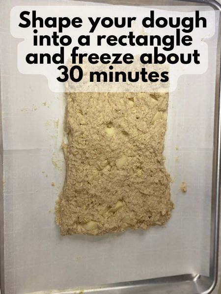 -Chill your scone dough in the freezer for about 30 minutes. You can even chill it longer if you want to, but I would recommend at least 30 minutes so your dough is a little firm and not-so-mushy when you pull it out.