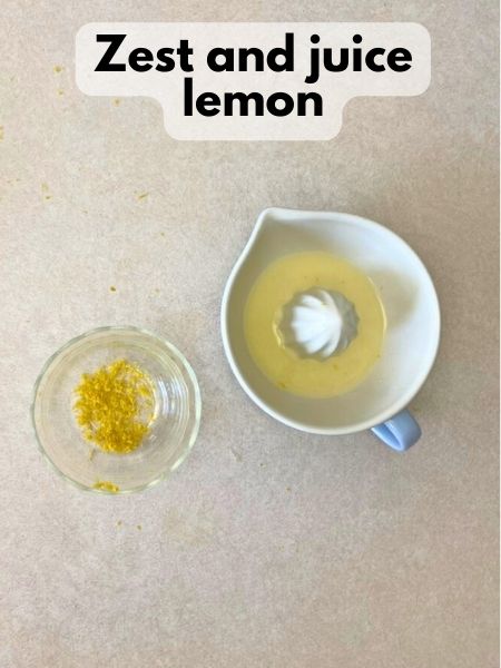 2. Zest and juice lemon. Keep zest and juice separate