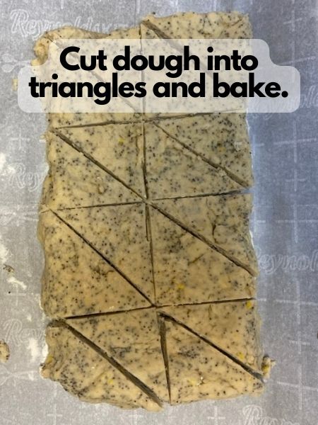 - After your dough has chilled, cut it into triangular wedges. Place the wedges on your prepared baking sheets, leaving space between each scone so they can expand a bit.
