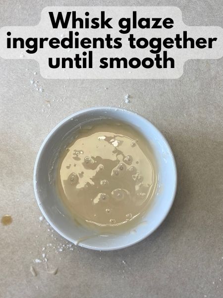 - Whisk all of your vanilla glaze ingredients together until smooth.