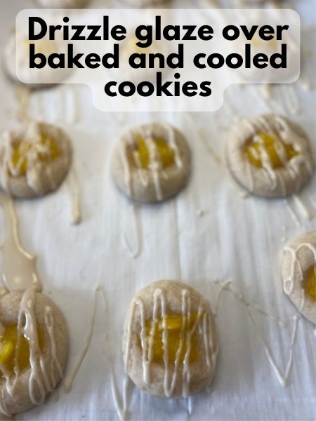 - Drizzle glaze over cooled mango thumbprint cookies.