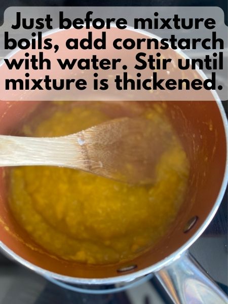 - Add the cornstarch mixture and continue to cook, stirring constantly, until the filling thickens. Remove from heat and let it cool.