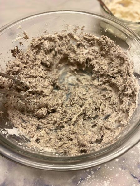 – In a mixing bowl, whip your vegetable shortening, powdered sugar, vanilla and Oreo filling together until smooth